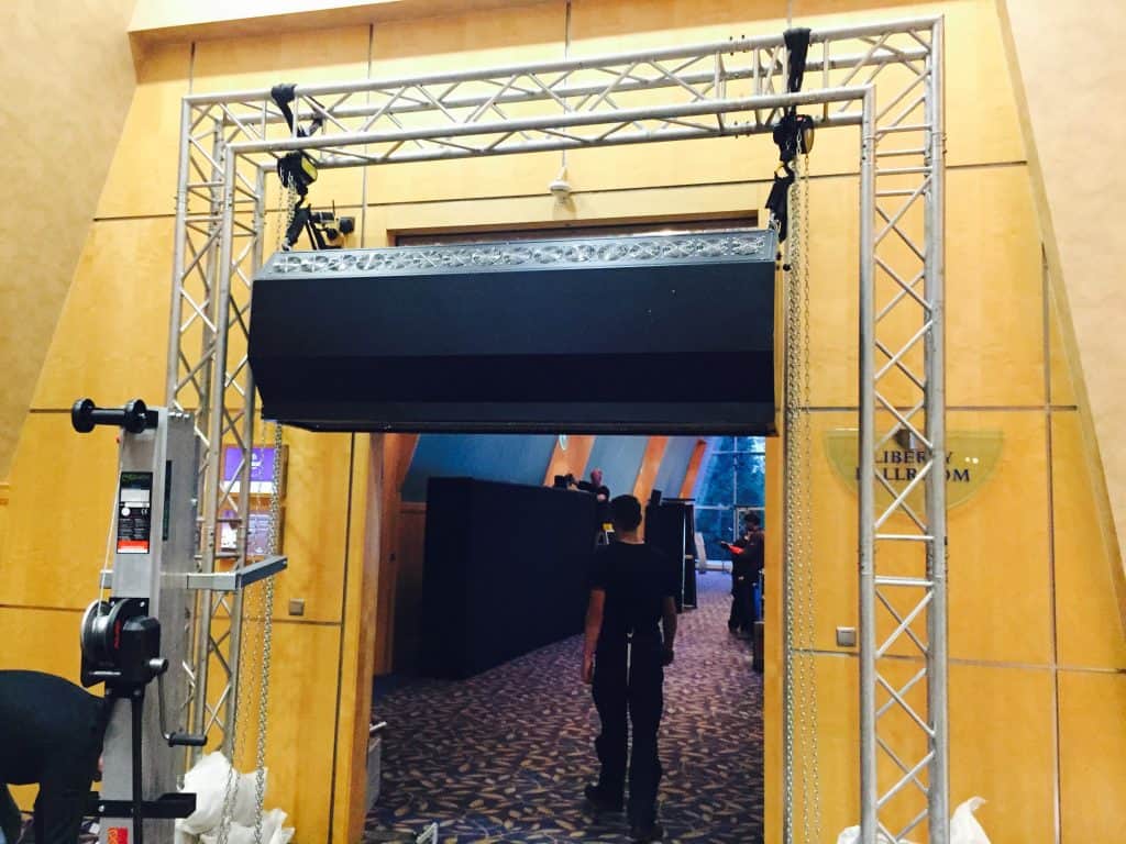 For mounting of a “down-fogger” variant we use a 4-point truss arch with steel plates. Two technicians need around 2 hours to mount this version. For the “up-fogger”- variant the fog unit is just placed onto the floor (e.g. on the stage edge) filled with tab water and connected to power – ready! The mounting time is then just half an hour for two engineers.
